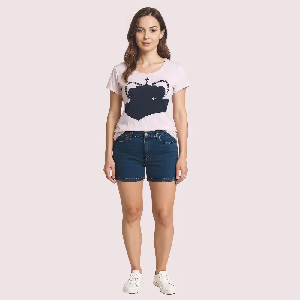 Rule your casual days in style with the Pink Crown Graphic Casual Tee. This soft, lightweight t-shirt features a bold navy crown print that adds a royal touch to your everyday look. Made from a comfortable cotton-blend fabric, it offers a relaxed fit with a classic round neckline and short sleeves — perfect for warm weather or layering. Whether paired with denim shorts, jeans, or joggers, this tee brings a fun, confident vibe to your casual wardrobe. Ideal for weekend outings, casual hangouts, or laid-back days at home.