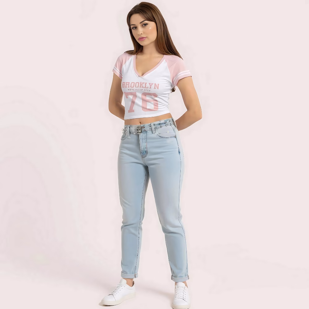 Add a fun and flirty touch to your casual wardrobe with this Pink “Brooklyn 76” V-Neck Crop Top. Featuring soft pink raglan sleeves, a bold varsity-style front graphic, and a flattering V-neckline, this cropped tee combines sporty vibes with feminine charm. Made from breathable, stretchable fabric, it’s ideal for everyday wear—whether you’re out with friends or chilling on campus.